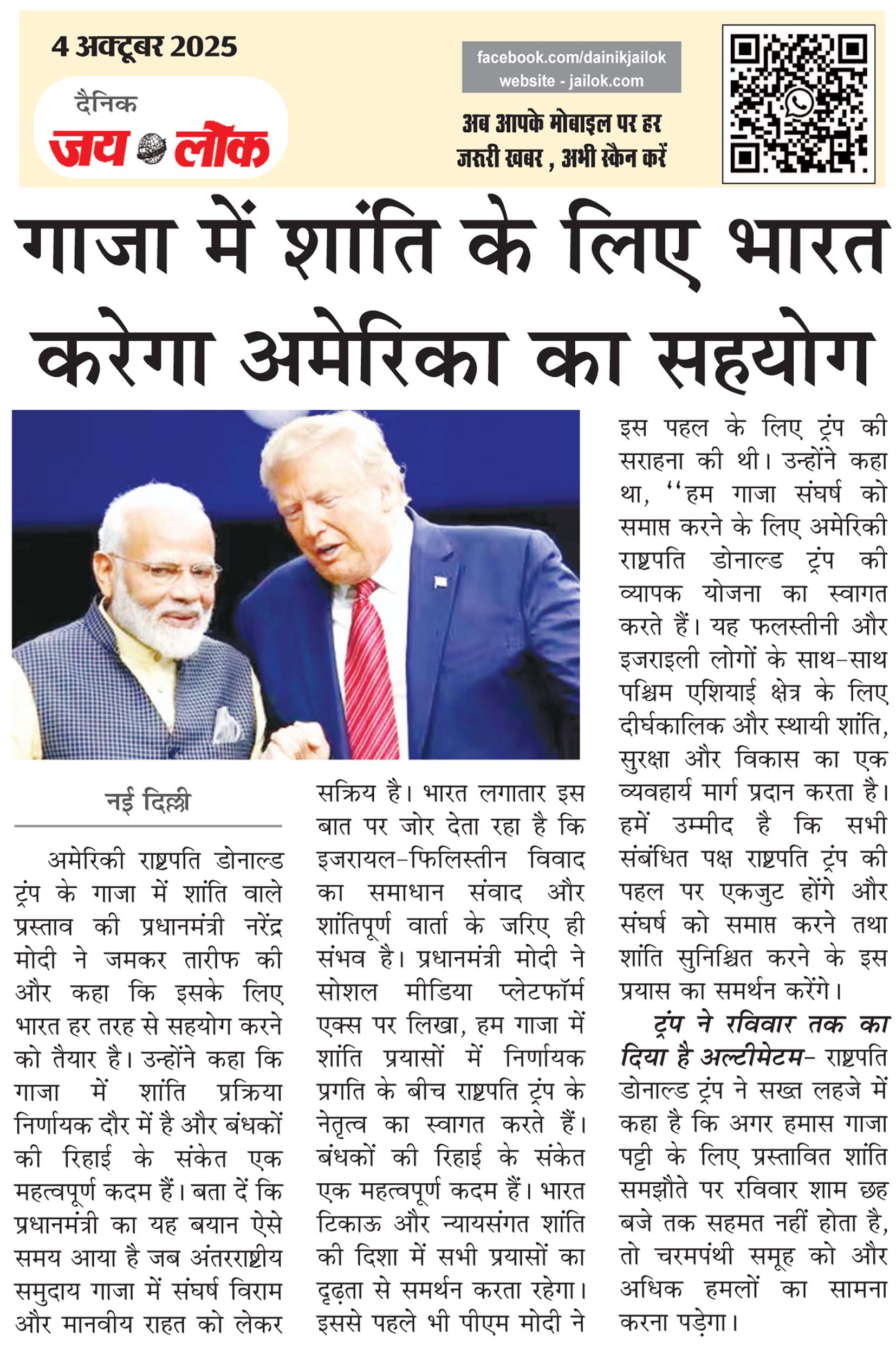 गाजा में शांति के लिए भारत करेगा अमेरिका का सहयोग