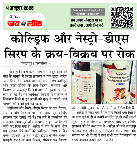 कोल्ड्रिफ और नेस्ट्रो-डीएस सिरप के क्रय-विक्रय पर रोक