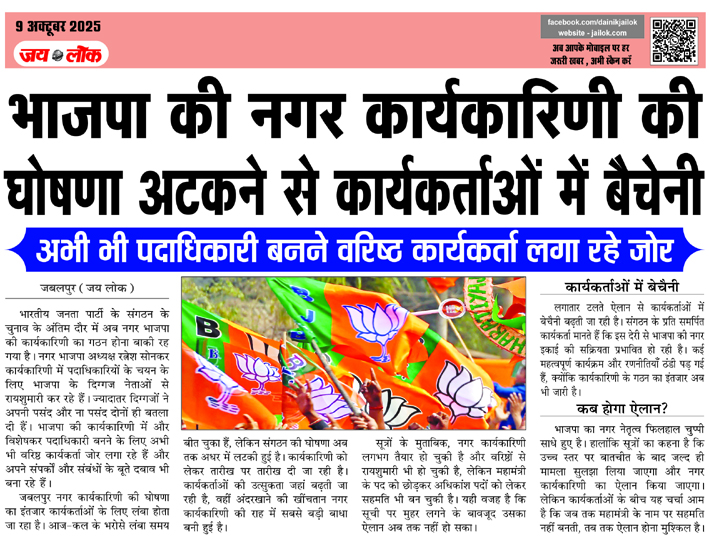 भाजपा की नगर कार्यकारिणी की घोषणा अटकने से कार्यकर्ताओं में बैचेनी