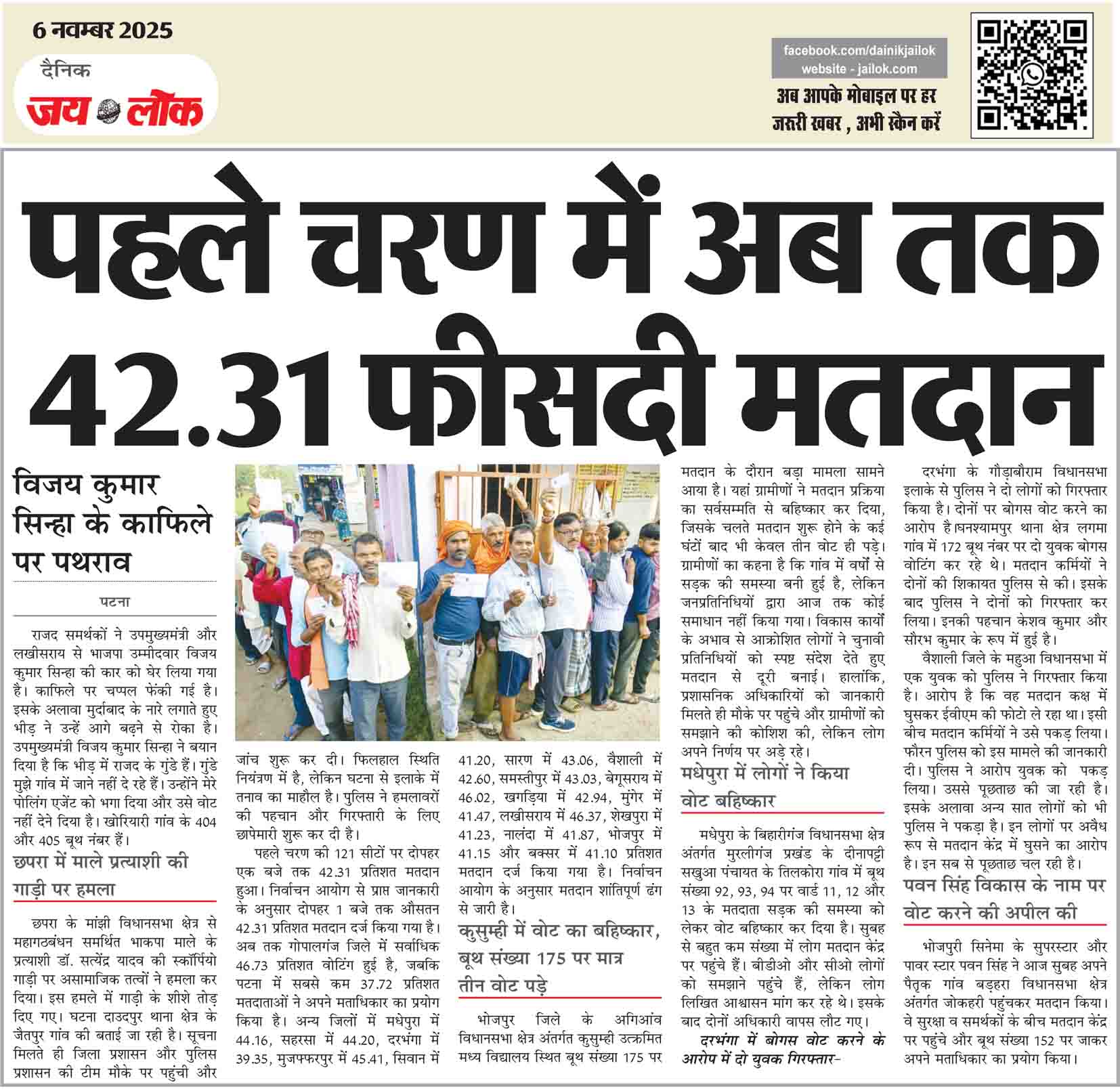 पहले चरण में अब तक 42.31 फीसदी मतदान, विजय कुमार सिन्हा के काफिले पर पथराव
