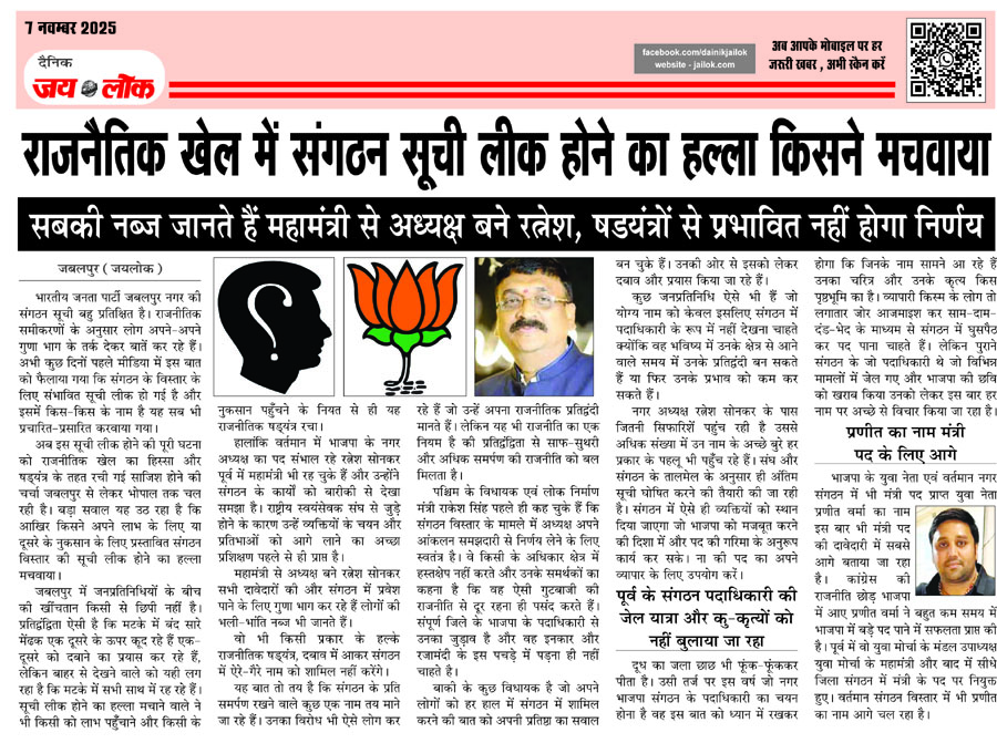 जबलपुर जय लोक । पनागर के कांग्रेस नेता विनोद श्रीवास्तव ने और उनके बेटे शुभम उर्फ राजा श्रीवास्तव जो कि