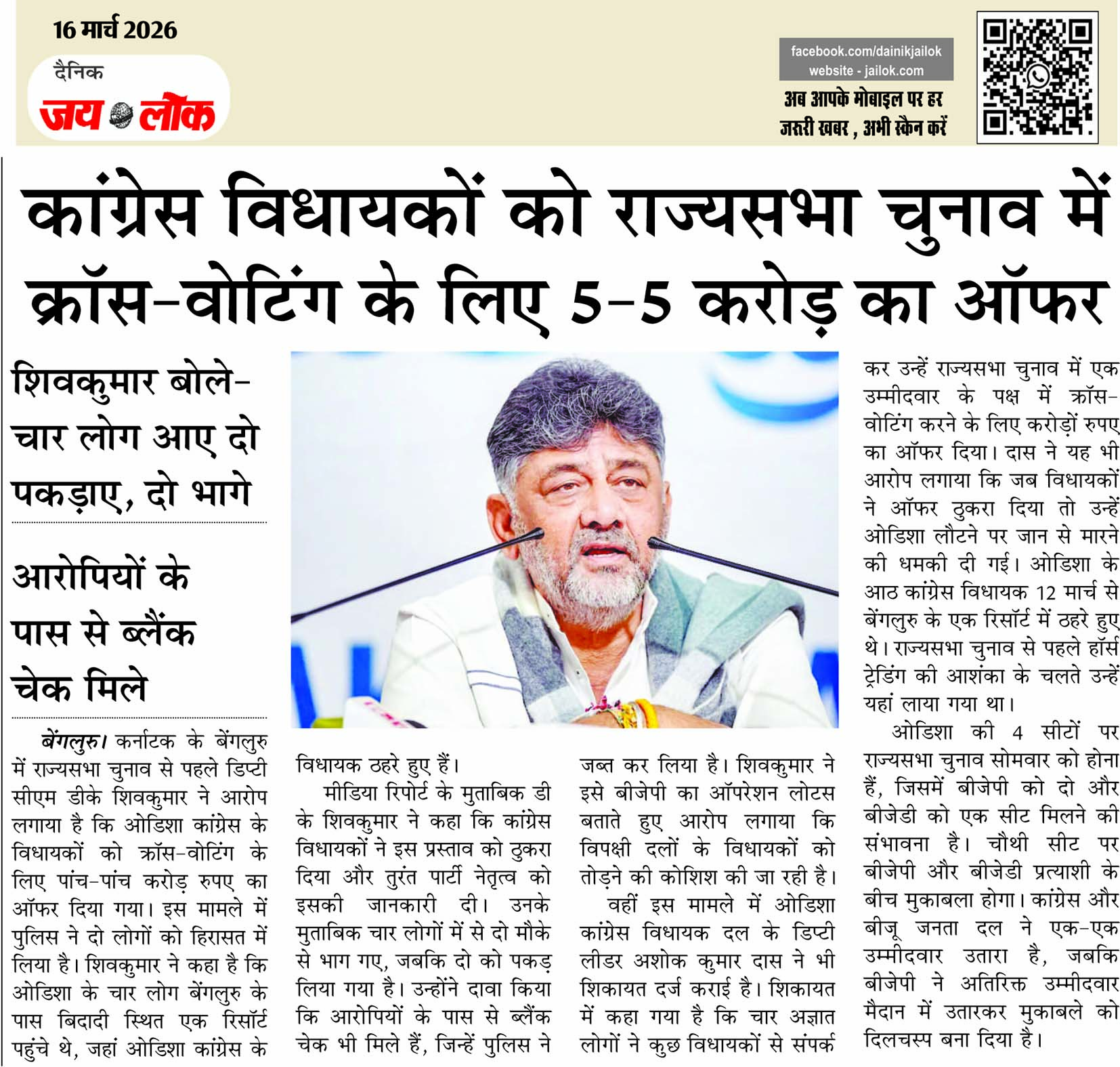 कांग्रेस विधायकों को राज्यसभा चुनाव में क्रॉस-वोटिंग के लिए 5-5 करोड़ का ऑफर