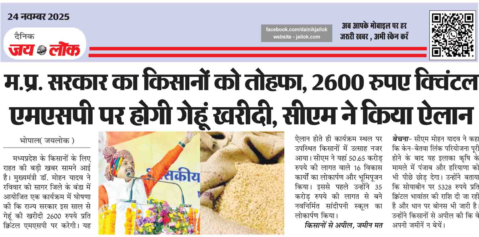 म.प्र. सरकार का किसानों को तोहफा, 2600 रुपए क्विंटल एमएसपी पर होगी गेहूं खरीदी, सीएम ने किया ऐलान