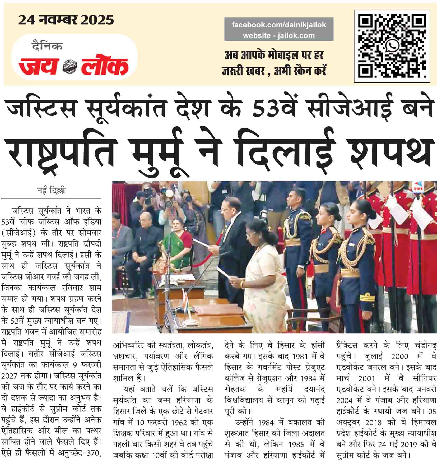 जस्टिस सूर्यकांत देश के 53वें सीजेआई बने राष्ट्रपति मुर्मू ने दिलाई शपथ