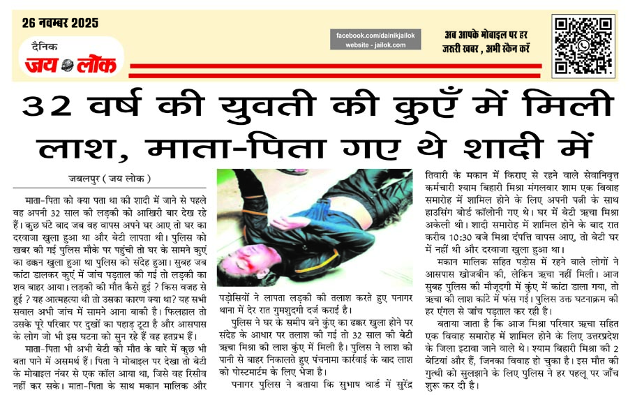 32 वर्ष की युवती की कुएँ में मिली लाश, माता-पिता गए थे शादी में