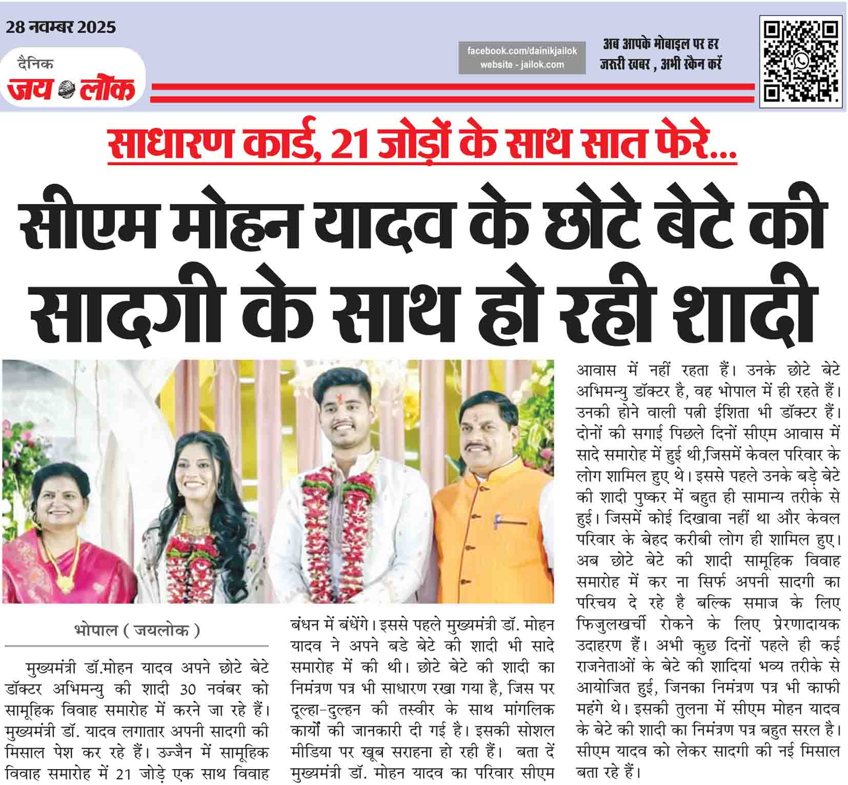 साधारण कार्ड, 21 जोड़ों के साथ सात फेरे… सीएम मोहन यादव के छोटे बेटे की सादगी के साथ हो रही शादी