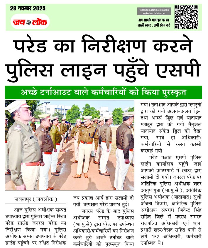 परेड का निरीक्षण करने पुलिस लाइन पहुँचे एसपी