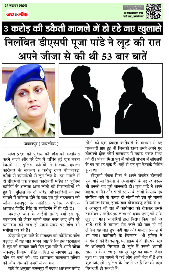 निलंबित डीएसपी पूजा पांडे ने लूट की रात अपने जीजा से की थी 53 बार बातें