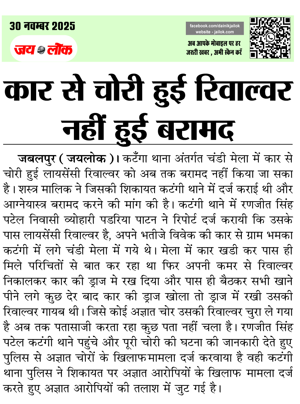 कार से चोरी हुई रिवाल्वर नहीं हुई बरामद