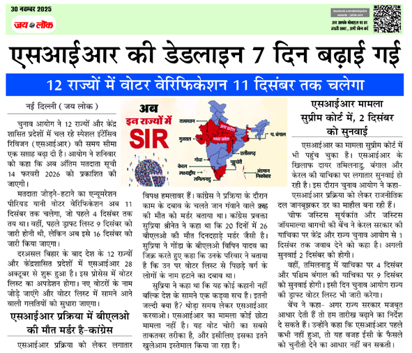 एसआईआर की डेडलाइन 7 दिन बढ़ाई गई