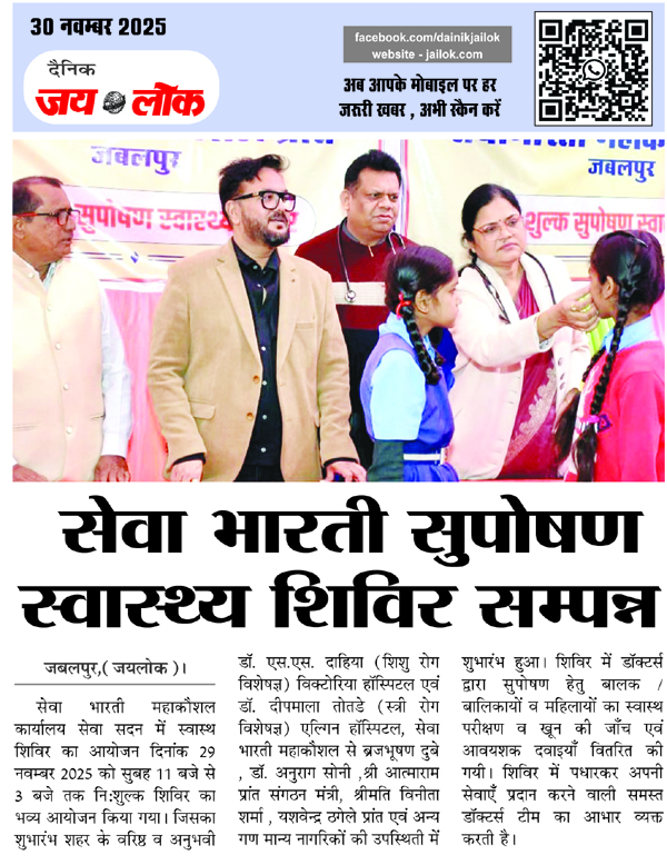 सेवा भारती सुपोषण स्वास्थ्य शिविर सम्पन्न