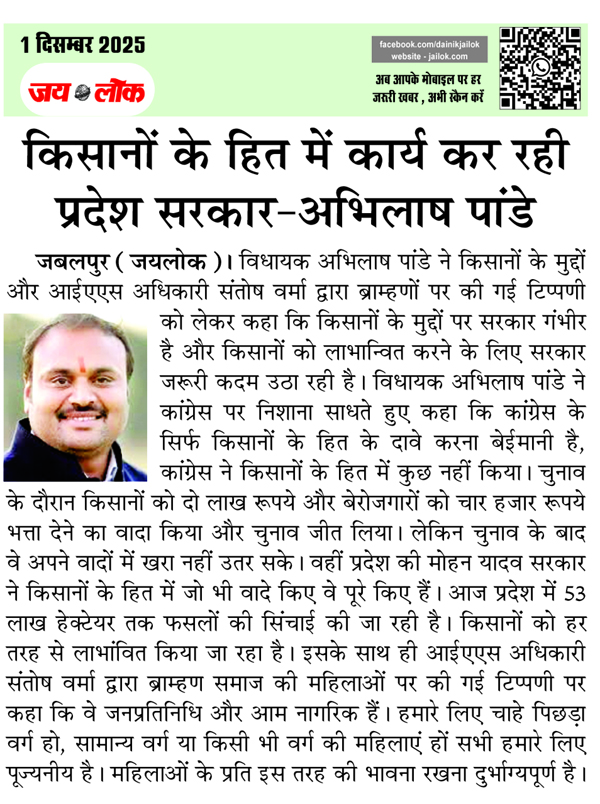 किसानों के हित में कार्य कर रही प्रदेश सरकार-अभिलाष पांडे