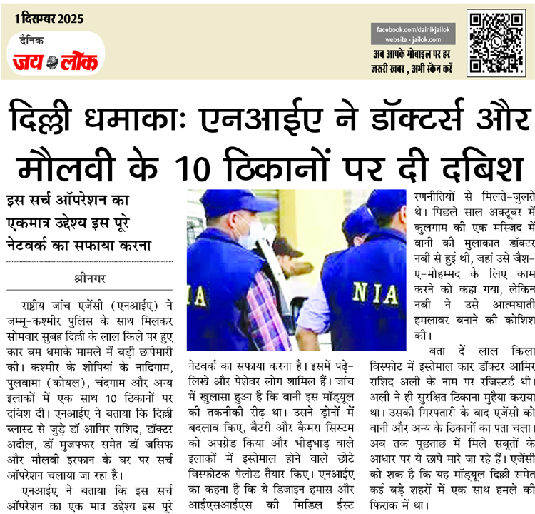 दिल्ली धमाका: एनआईए ने डॉक्टर्स और मौलवी के 10 ठिकानों पर दी दबिश
