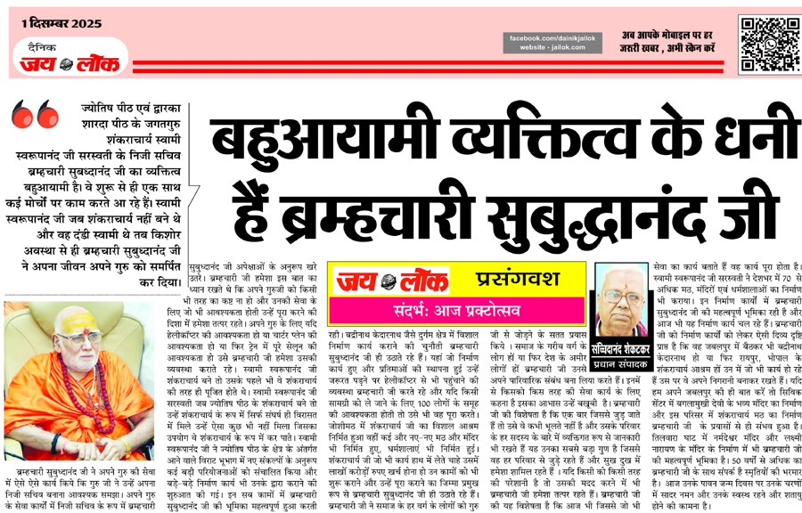 बहुआयामी व्यक्तित्व के धनी हैं ब्रम्हचारी सुबुद्धानंद जी