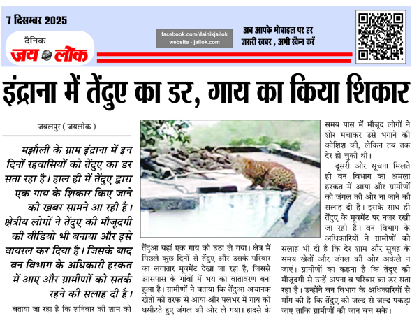 इंद्राना में तेंदुए का डर, गाय का किया शिकार