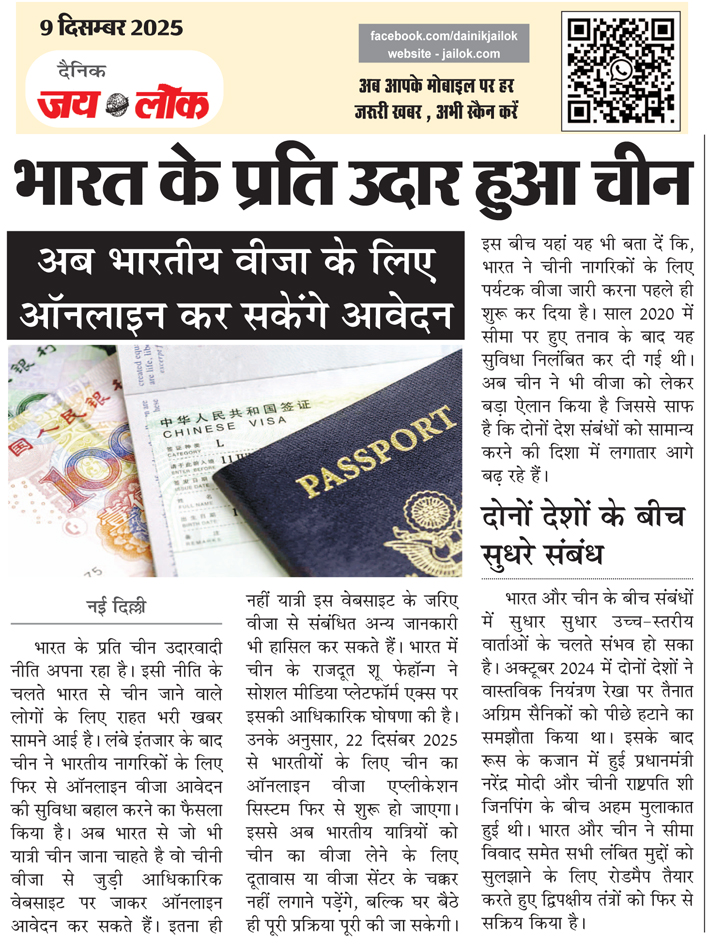 भारत के प्रति उदार हुआ चीन, अब भारतीय वीजा के लिए ऑनलाइन कर सकेंगे आवेदन
