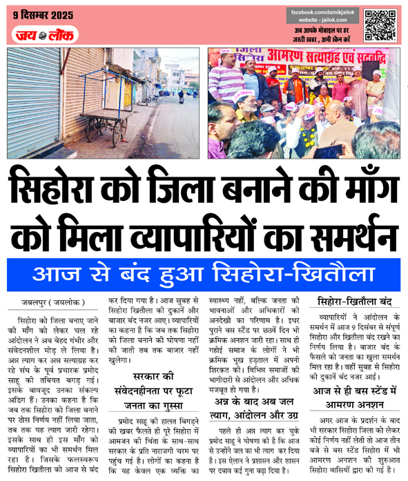 सिहोरा को जिला बनाने की माँग को मिला व्यापारियों का समर्थन
