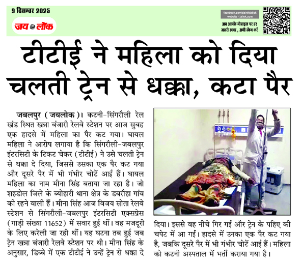 टीटीई ने महिला को दिया चलती ट्रेन से धक्का, कटा पैर