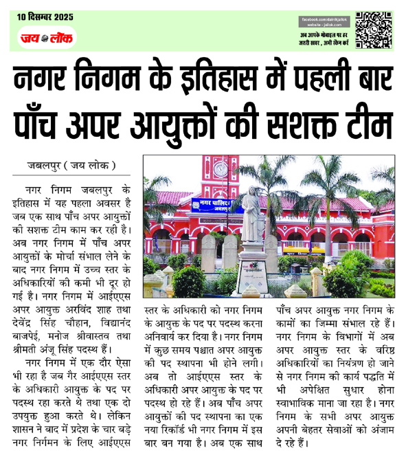 नगर निगम के इतिहास में पहली बार पाँच अपर आयुक्तों की सशक्त टीम