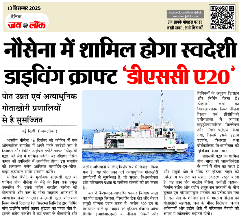 नौसेना में शामिल होगा स्वदेशी डाइविंग क्राफ्ट ‘डीएससी ए20’