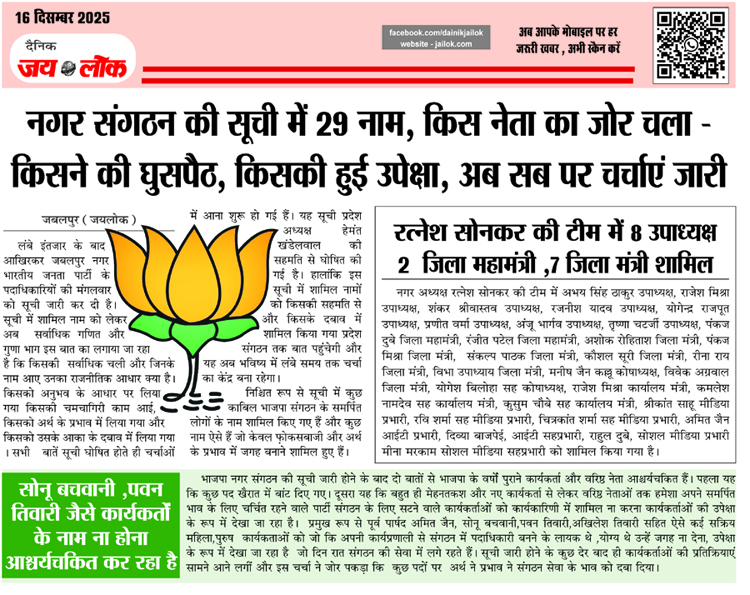 जबलपुर जय लोक । पनागर के कांग्रेस नेता विनोद श्रीवास्तव ने और उनके बेटे शुभम उर्फ राजा श्रीवास्तव जो कि