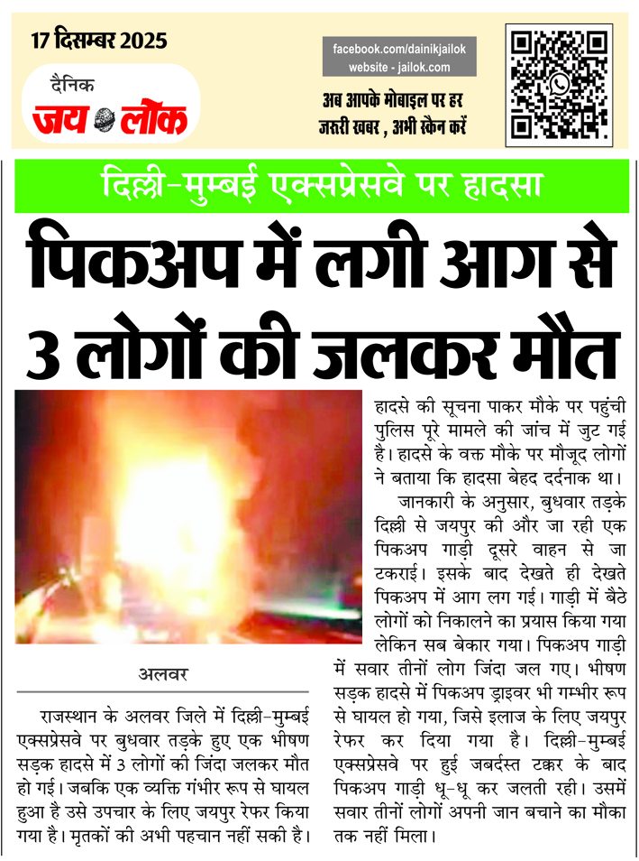 दिल्ली-मुम्बई एक्सप्रेसवे पर हादसा, पिकअप में लगी आग से 3 लोगों की जलकर मौत