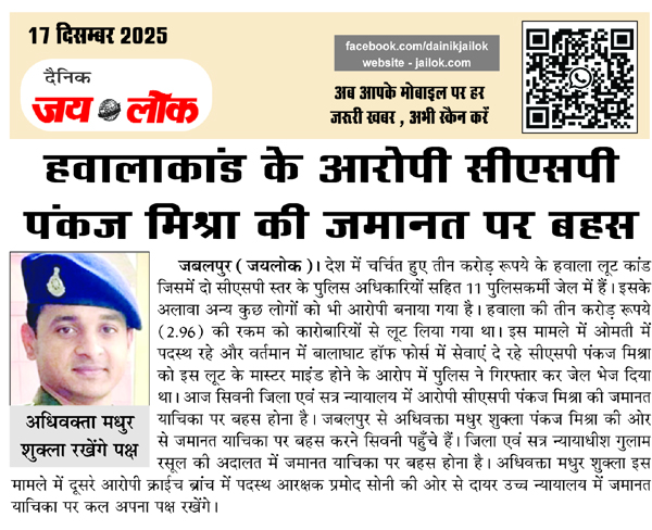 हवालाकांड के आरोपी सीएसपी पंकज मिश्रा की जमानत पर बहस, अधिवक्ता मधुर शुक्ला रखेंगे पक्ष