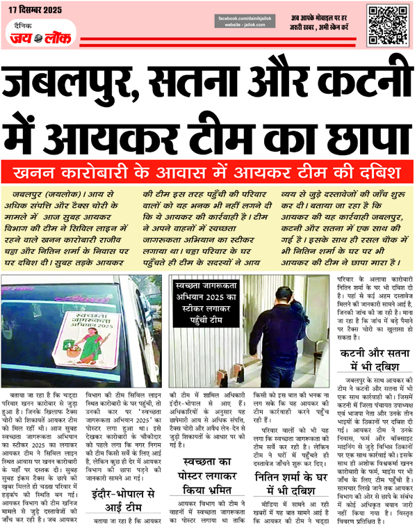 जबलपुर, सतना और कटनी में आयकर टीम का छापा, खनन कारोबारी के आवास में आयकर टीम की दबिश