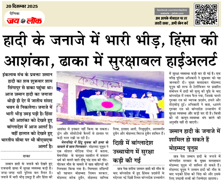 हादी के जनाजे में भारी भीड़, हिंसा की आशंका, ढाका में सुरक्षाबल हाईअलर्ट