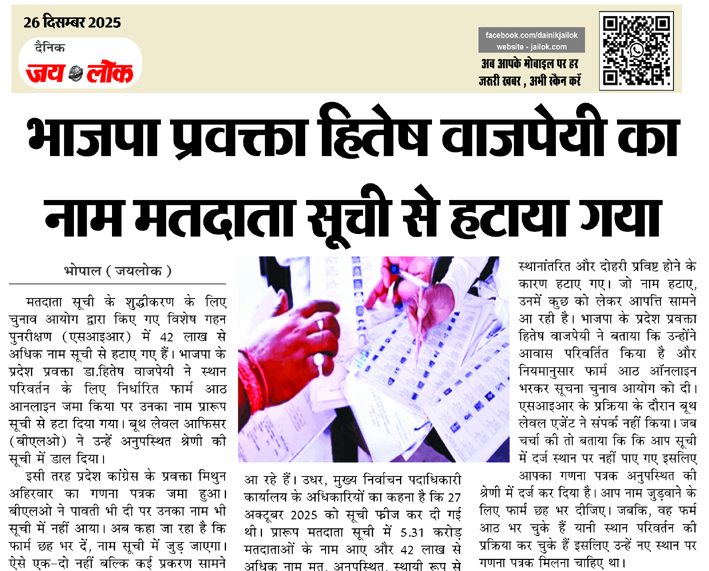 भाजपा प्रवक्ता हितेष वाजपेयी का नाम मतदाता सूची से हटाया गया