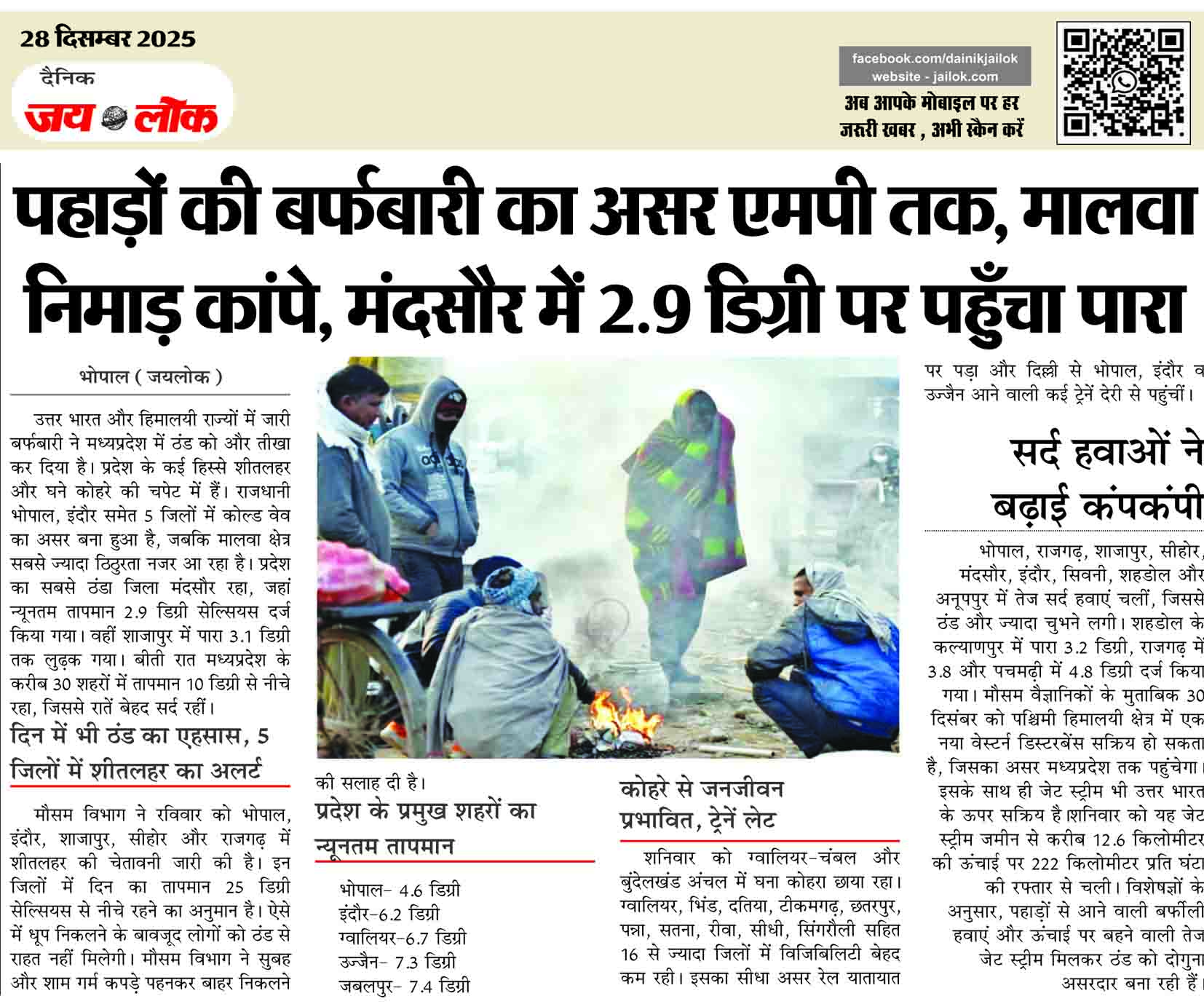 पहाड़ों की बर्फबारी का असर एमपी तक, मालवा निमाड़ कांपे, मंदसौर में 2.9 डिग्री पर पहुँचा पारा