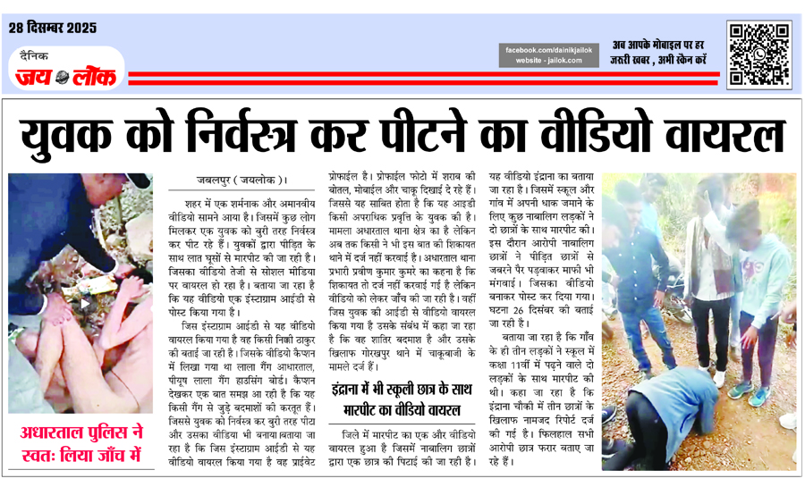 युवक को निर्वस्त्र कर पीटने का वीडियो वायरल, अधारताल पुलिस ने स्वत: लिया जाँच में