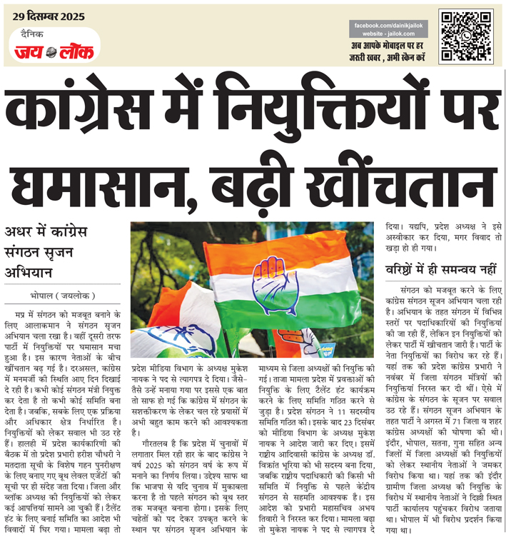कांग्रेस में नियुक्तियों पर घमासान, बढ़ी खींचतान