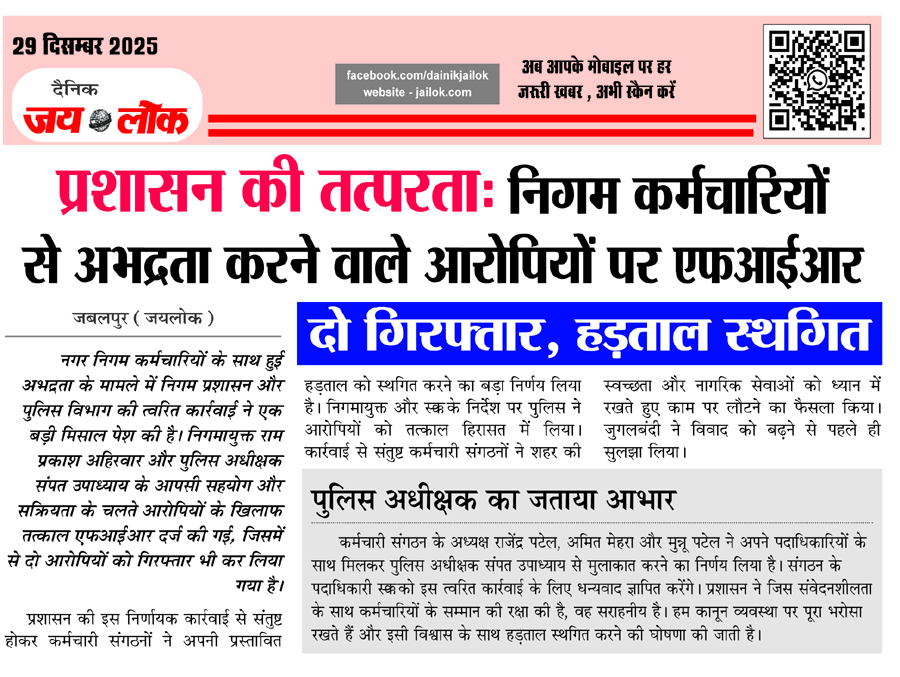 प्रशासन की तत्परता: निगम कर्मचारियों से अभद्रता करने वाले आरोपियों पर एफआईआर दो गिरफ्तार, हड़ताल स्थगित