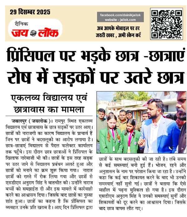 प्रिंसिपल पर भड़के छात्र -छात्राएं रोष में सड़को पर उतरे छात्र, एकलव्य विद्यालय एवं छात्रावास का मामला