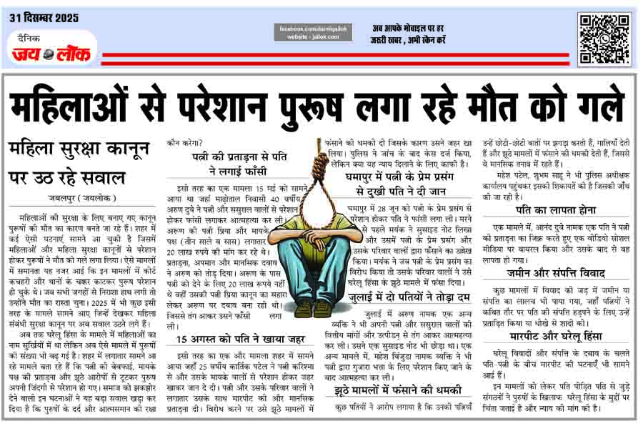 महिलाओं से परेशान पुरूष लगा रहे मौत को गले, महिला सुरक्षा कानून पर उठ रहे सवाल