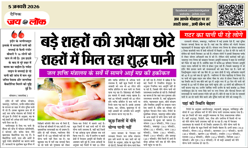 बड़े शहरों की अपेक्षा छोटे शहरों में मिल रहा शुद्ध पानी