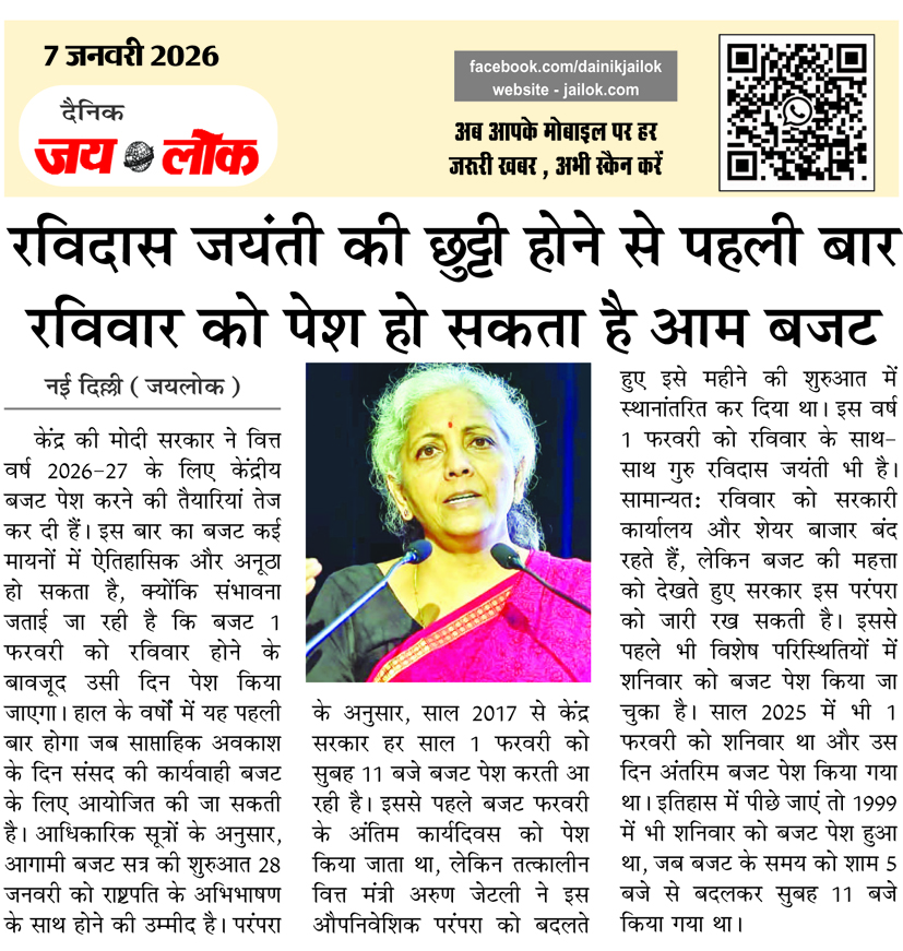 रविदास जयंती की छुट्टी होने से पहली बार रविवार को पेश हो सकता है आम बजट