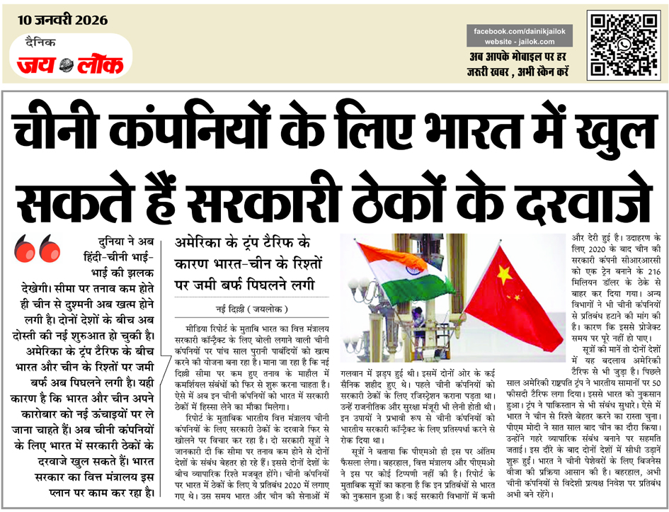 चीनी कंपनियों के लिए भारत में खुल सकते हैं सरकारी ठेकों के दरवाजे