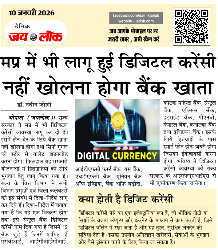मप्र में भी लागू हुई डिजिटल करेंसी नहीं खोलना होगा बैंक खाता