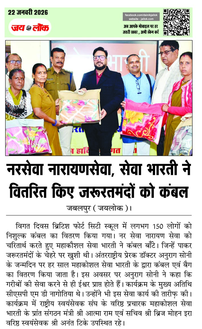 नरसेवा नारायणसेवा, सेवा भारती ने वितरित किए जरूरतमंदों को कंबल