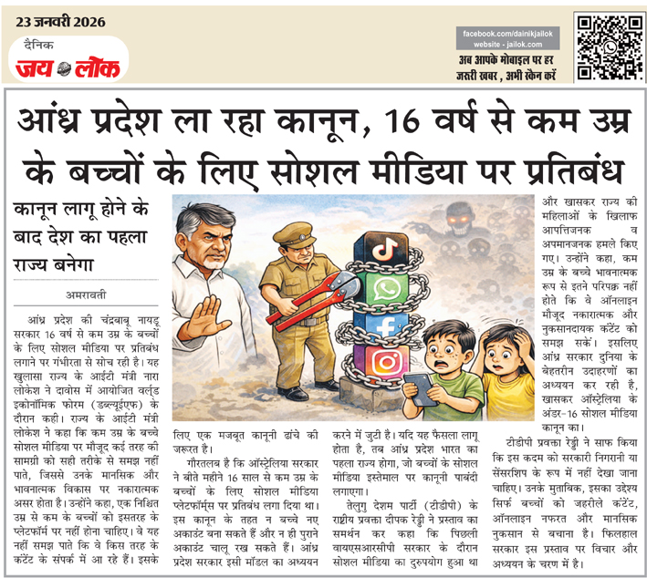 आंध्र प्रदेश ला रहा कानून, 16 वर्ष से कम उम्र के बच्चों के लिए सोशल मीडिया पर प्रतिबंध