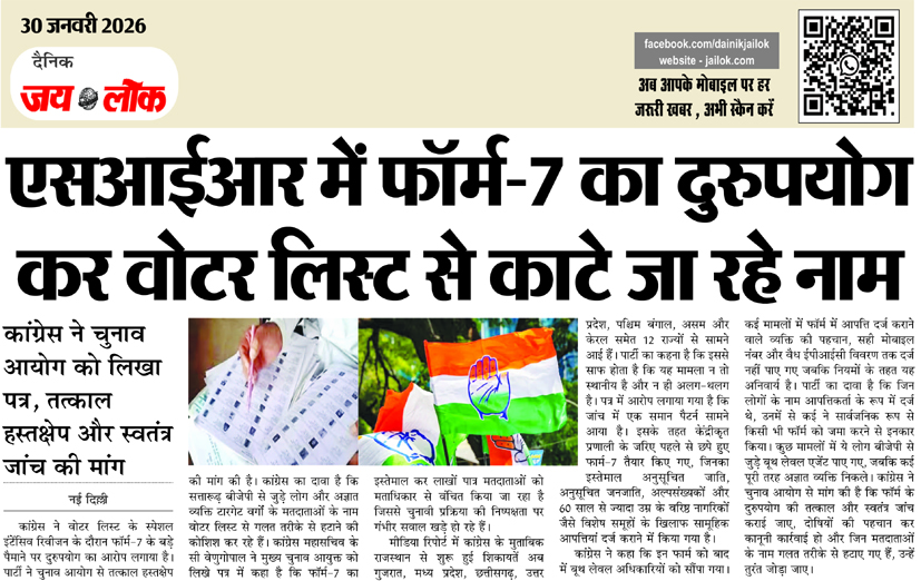 एसआईआर में फॉर्म-7 का दुरुपयोग कर वोटर लिस्ट से काटे जा रहे नाम