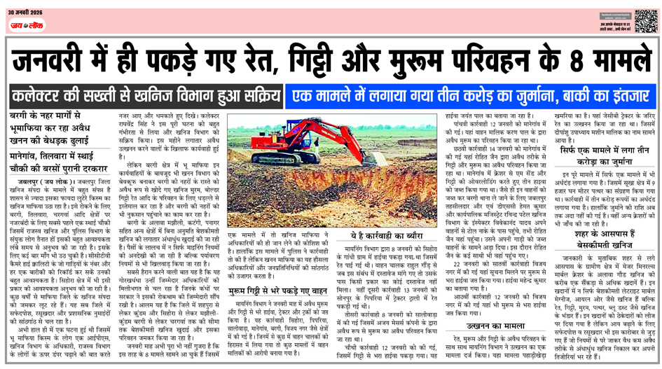नहर के मार्गों को अवैध परिवहन में लगे टनों वजनी हाईवा डम्फर कर रहे क्षतिग्रस्त, ना कोई रोक -ना कोई टोक, मानेगांव तिलवारा, बिलहरी सिहोरा में खनिज व राजस्व की स्थायी चौकी जरूरी