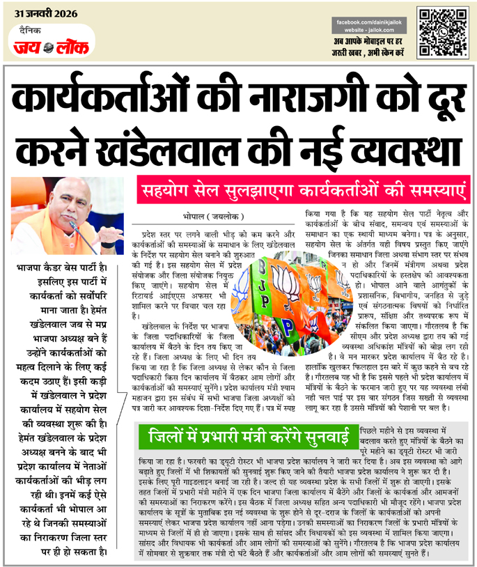 कार्यकर्ताओं की नाराजगी को दूर करने खंडेलवाल की नई व्यवस्था