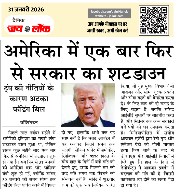 अमेरिका में एक बार फिर से सरकार का शटडाउन