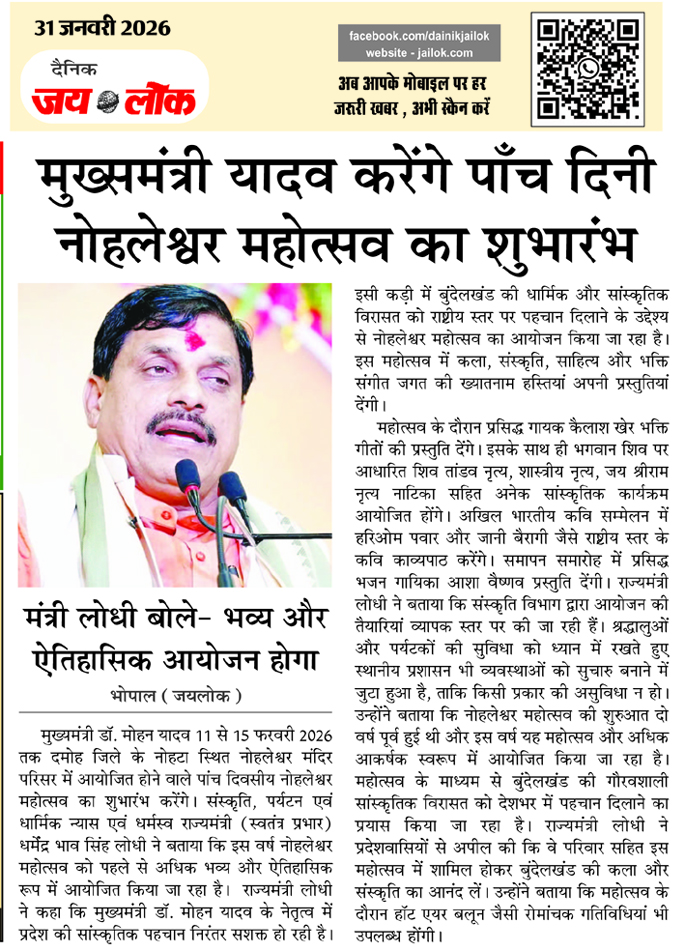 मुख्समंत्री यादव करेंगे पाँच दिनी नोहलेश्वर महोत्सव का शुभारंभ