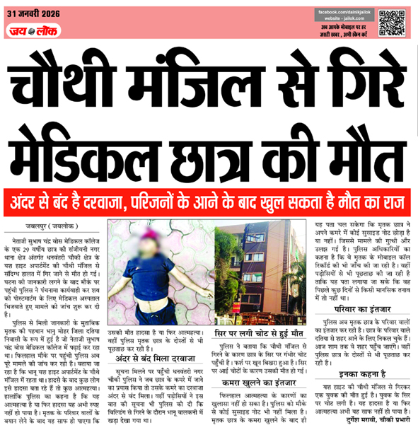 चौथी मंजिल से गिरे मेडिकल छात्र की मौत