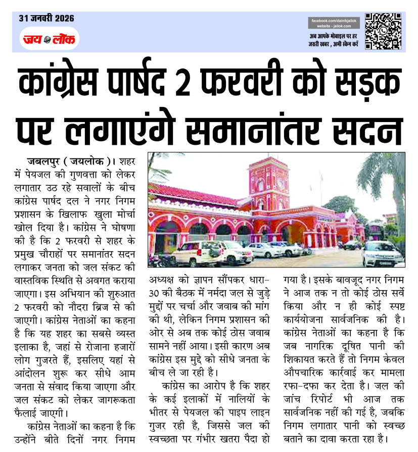 कांग्रेस पार्षद 2 फरवरी को सडक़ पर लगाएंगे समानांतर सदन