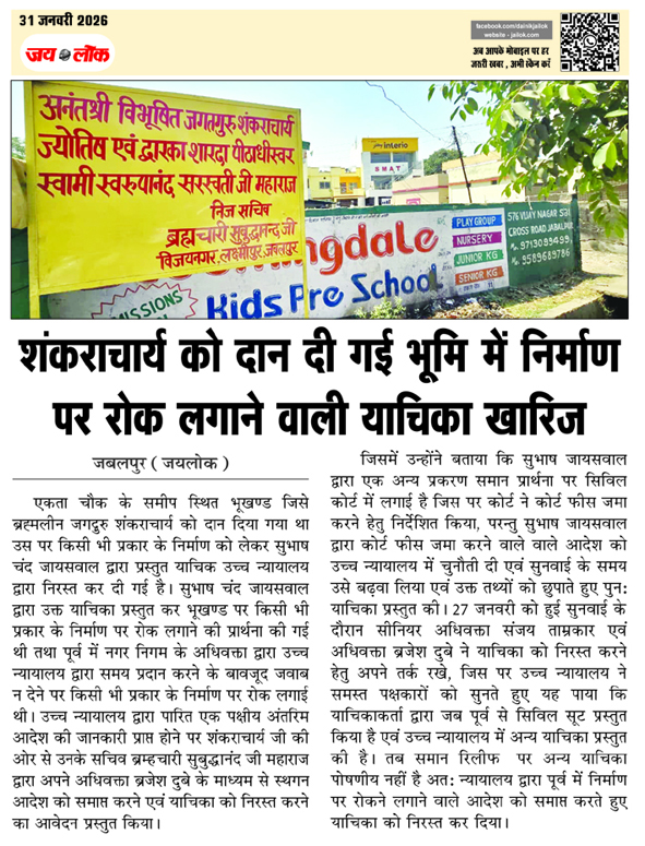 शंकराचार्य को दान दी गई भूमि में निर्माण पर रोक लगाने वाली याचिका खारिज